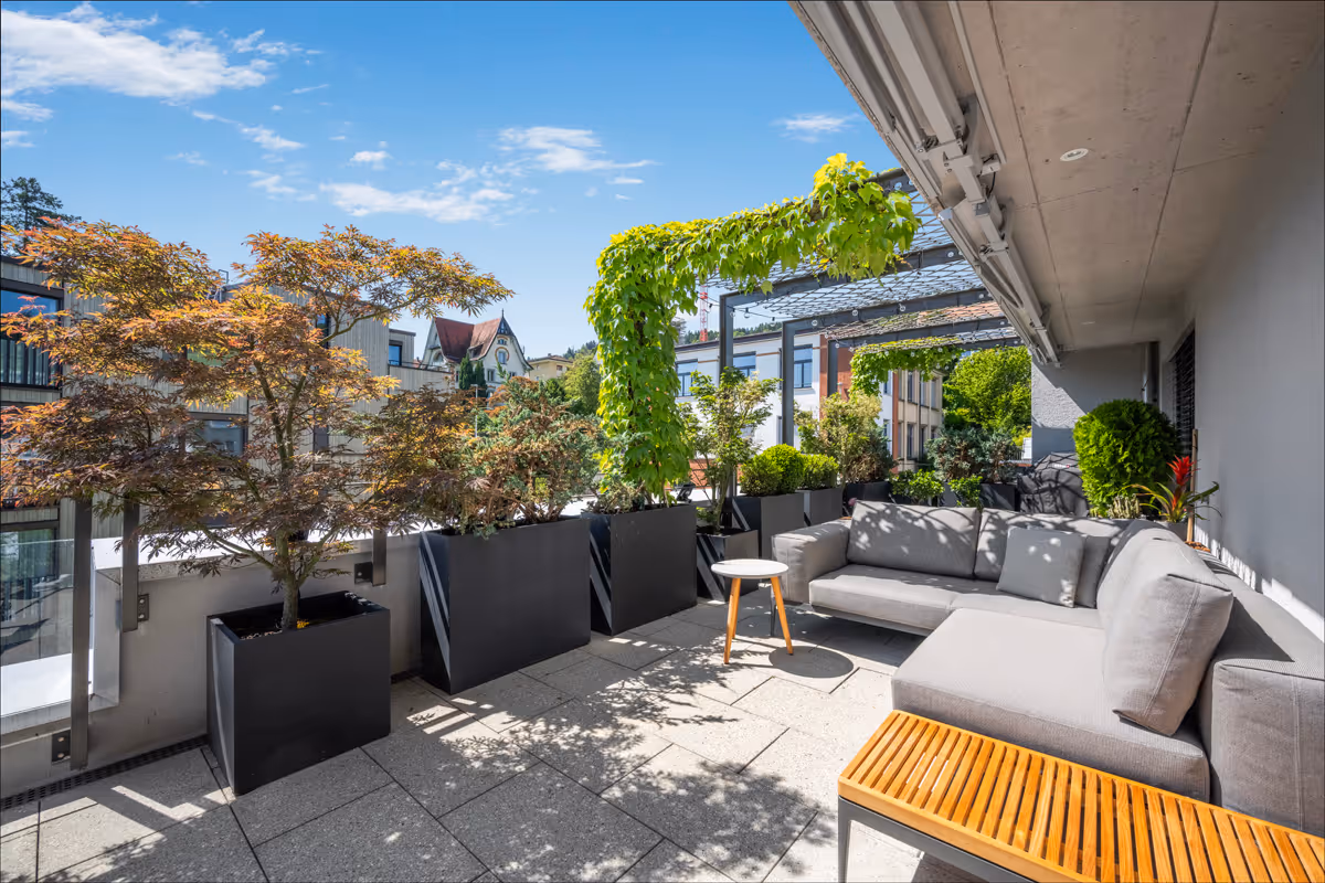 Zwei grosszügige Terrassen mit insgesamt 94 m²